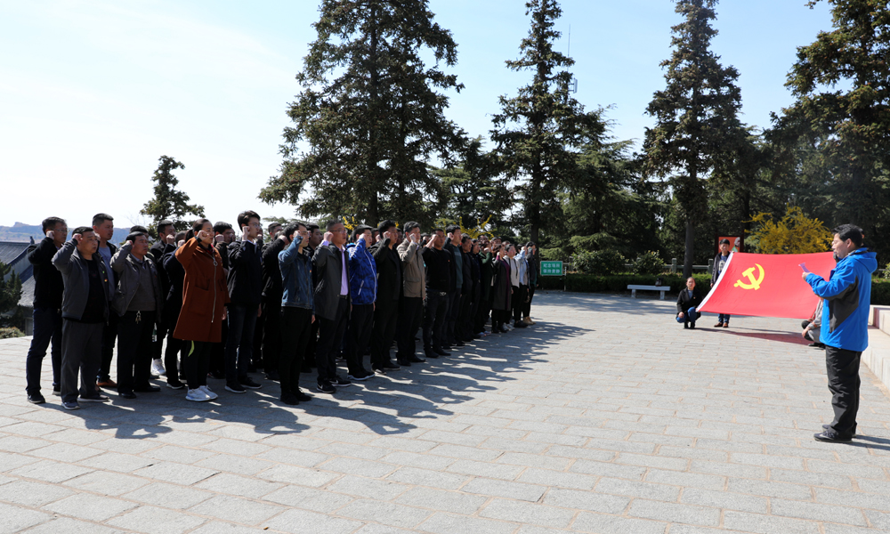 青口投資公司黨委組織黨員干部80余人到贛榆抗日山烈士陵園小沙東海戰(zhàn)烈士墓前,為革命先烈敬獻花籃,長久肅立默哀,重溫入黨誓詞。