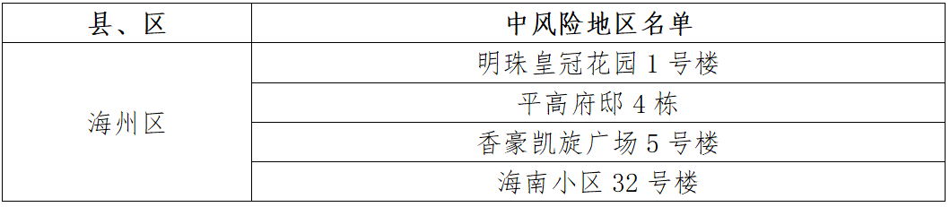 根據(jù)國務院聯(lián)防聯(lián)控機制有關(guān)規(guī)定,經(jīng)市指揮部研究決定,自發(fā)布之日起,對我市部分區(qū)域疫情風險等級進行調(diào)整:海州區(qū)寶泰商住樓、同科匯豐國際A5號樓、御景龍灣D6號樓、香溢世紀花城小區(qū)20號樓、馨海名郡18號樓、馨海名郡2號樓、南極南路60-1號樓由中風險地區(qū)調(diào)整為低風險地區(qū)。其他地區(qū)風險等級不變。調(diào)整后全市現(xiàn)有4個中風險地區(qū)。