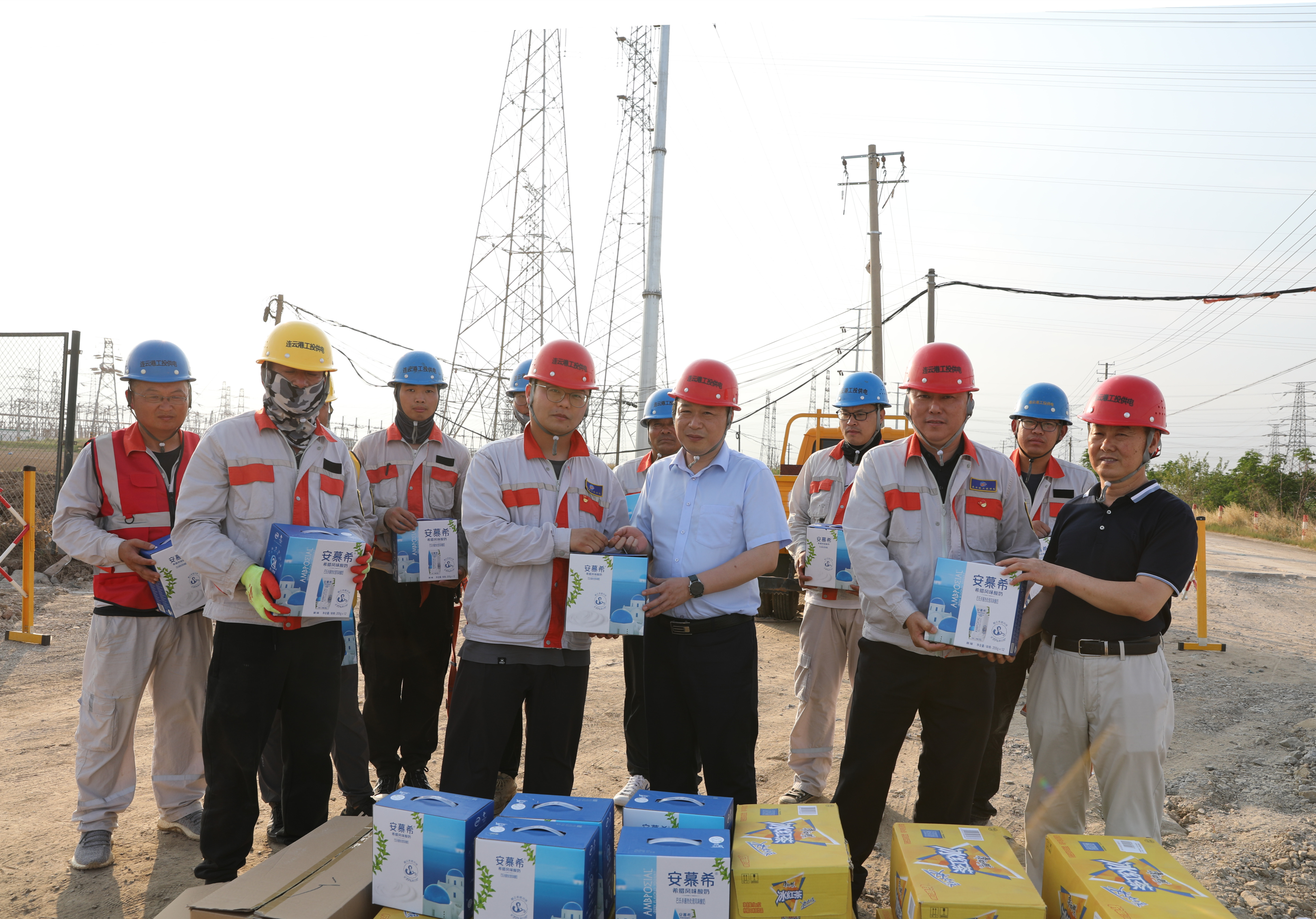 連續(xù)幾天,連云港市進入高溫天氣。酷暑當(dāng)頭,德邦廠區(qū)段電力桿線遷改工程施工人員卻堅守在施工一線,冒著三十幾度高溫,奮戰(zhàn)在施工現(xiàn)場,加班加點保障著工程建設(shè)的進度。為切實做好一線施工人員防暑降溫工作,6月21日下午,公司黨委書記、總經(jīng)理宋晟曄、黨委副書記、工會主席王志軍一行人來到德邦電力桿線遷改工程的施工現(xiàn)場,把冰紅茶、西瓜等防暑降溫物品送到施工人員手中,給堅持奮戰(zhàn)在高溫一線的職工送去了公司滿滿的關(guān)懷和夏日里的一份清涼。(邱利益)
