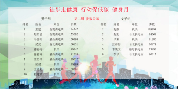 因為“微信運動”的互動性和競爭性,促使越來越多的職工開始有意識地外出“走兩步”,在職工中形成了你超我趕的良好運動氛圍,有效減少了員工開車出行的頻率,增加了員工參與戶外活動、親近自然的興致。活動已經進行了兩周,已有10人步數超過20萬,最高者已經達到34萬,人均步數比活動前增加了50%,效果十分顯著。(電宣)