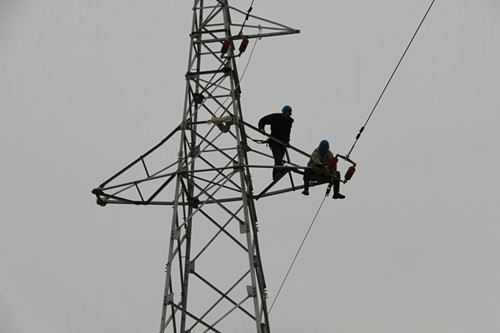 4月15日下午,隨著35KV東管線改造的第一根導線順利裝設,標志著我公司輸配電施工水平又邁上了一個新的臺階。 35KV東管線改造工程是我公司為解決徐南公司生產經營和居民生活用電緊張而實施的一項便民工程,技術要求高,施工難度大。為此,公司領導高度重視,從各供電所挑選精兵強將,組織了40余人的施工隊伍,公司副書記、副經理盧明生、副經理袁慶國親臨現場,指導施工。經過全體干群努力奮戰,首次成功架設了35KV線路2.1公里,近30米高的角鋼電力鐵塔。(政工 朱兵)