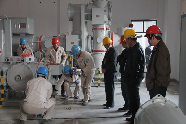 范總認(rèn)真檢查了施工情況,聽(tīng)取了工程部負(fù)責(zé)人的匯報(bào),并對(duì)工程施工提出了希望和要求。范總指出,利海化工項(xiàng)目是集團(tuán)公司重點(diǎn)工程,110KV變電站更是重中之重;在土建未完成、進(jìn)場(chǎng)條件不具備的情況下,我們?nèi)匀灰朔刂乩щy,保安全、搶時(shí)間、趕進(jìn)度;要做好建設(shè)單位、土建施工單位、設(shè)備廠家的協(xié)調(diào)工作。范總強(qiáng)調(diào),利海化工變電工程是公司從10KV到110KV的一次歷史性跨越,要抓住機(jī)遇,以積累施工經(jīng)驗(yàn)、鍛煉隊(duì)伍為主,實(shí)現(xiàn)施工技術(shù)、施工組織和施工管理大提升。要努力鉆研業(yè)務(wù),確保工程質(zhì)量一流,確保兩個(gè)月順利竣工,力爭(zhēng)提前完工,不拖利海化工項(xiàng)目整體竣工進(jìn)度,為其早日開(kāi)工建設(shè)、盡快投產(chǎn)達(dá)效提供可靠的電力保障。