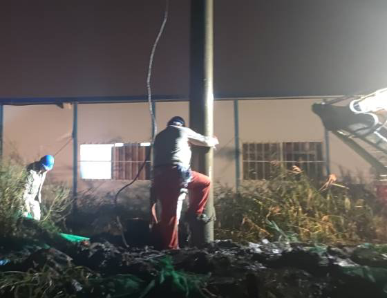1015日15臺北供電所接到報修電話10KV港北線跳閘,該所立刻安排工作人員現場巡視,發現系10KV港北線27號電桿斷裂倒地,造成線路接地引起的跳閘故障需停電更換電桿。為了盡快恢復供電,臺北供電所快速響應,立刻組織搶修工作。