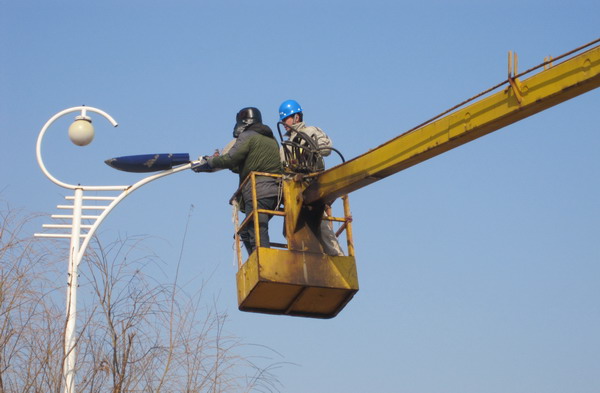 1月23日,為使青口鹽場居民過一個快樂、詳和、明亮的春節,青口供電所組織職工義務為鹽場檢修路燈。(宋中文)