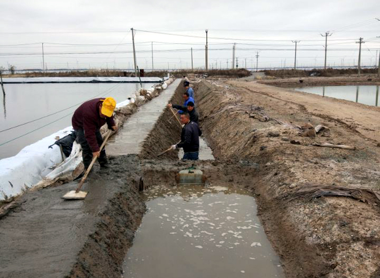 11班生產(chǎn)現(xiàn)場,職工們正在進(jìn)行溝道清淤,池堰修整工作。11班是黨員模范班組,這個(gè)班冬準(zhǔn)工作進(jìn)度比別的班組快一些,班長章保衛(wèi)激情豪邁,信心飽滿,干好當(dāng)前,備戰(zhàn)明年,我們班的冬準(zhǔn)工作標(biāo)準(zhǔn)要高,質(zhì)量要硬,進(jìn)度要快,要確保各項(xiàng)工作走在公司前列,去年冬準(zhǔn),我們對一期灘場進(jìn)行了維護(hù)保養(yǎng),今年冬準(zhǔn)工作重點(diǎn)放在二期,到2019年冬準(zhǔn)再把一,二期灘場維修保養(yǎng)一遍,那我們公司的生產(chǎn)能力、灘容灘貌將會(huì)上一個(gè)新的臺階,將會(huì)跨進(jìn)制鹽行業(yè)的前列,這是一個(gè)敢想,敢干的年輕黨員,在他的心中己經(jīng)描繪一幅日曬制鹽明天發(fā)展的美好藍(lán)圖。其他生產(chǎn)班組,有的在維護(hù)灘場,清理雜草雜物,有的在修建標(biāo)準(zhǔn)化廩基,冬準(zhǔn)工作有序推進(jìn),處處都可以看到火熱的勞動(dòng)場面。