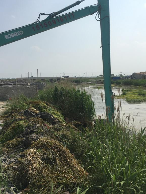 近日,機電服務公司租用長臂挖掘機清理西旺公司泵站河道的水草。又因河道中間水草面積較大,挖掘機不能完全清理,機電服務公司機電組王緒華等人,租用小船用繩子加鐵鉤等辦法,清理河道中的水草。(蘇南)