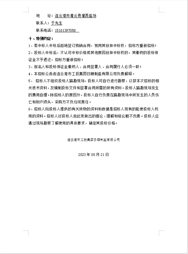 日曬制鹽有限公司橡膠墊等物資招標公告