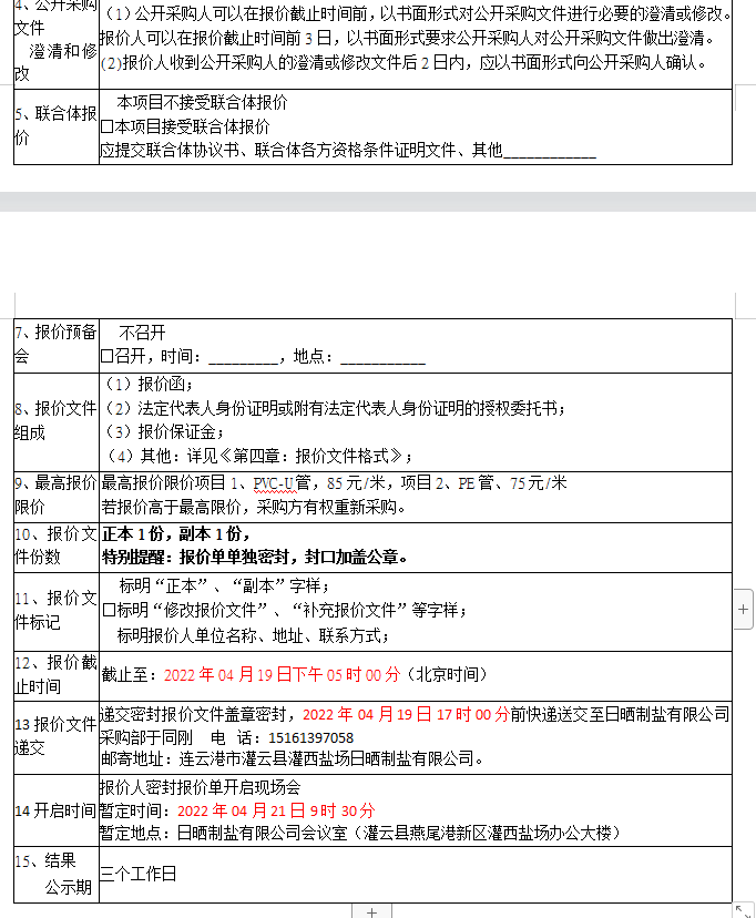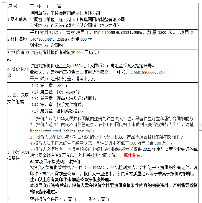 報價保證金接收人:連云港市工投集團日曬制鹽有限公司。