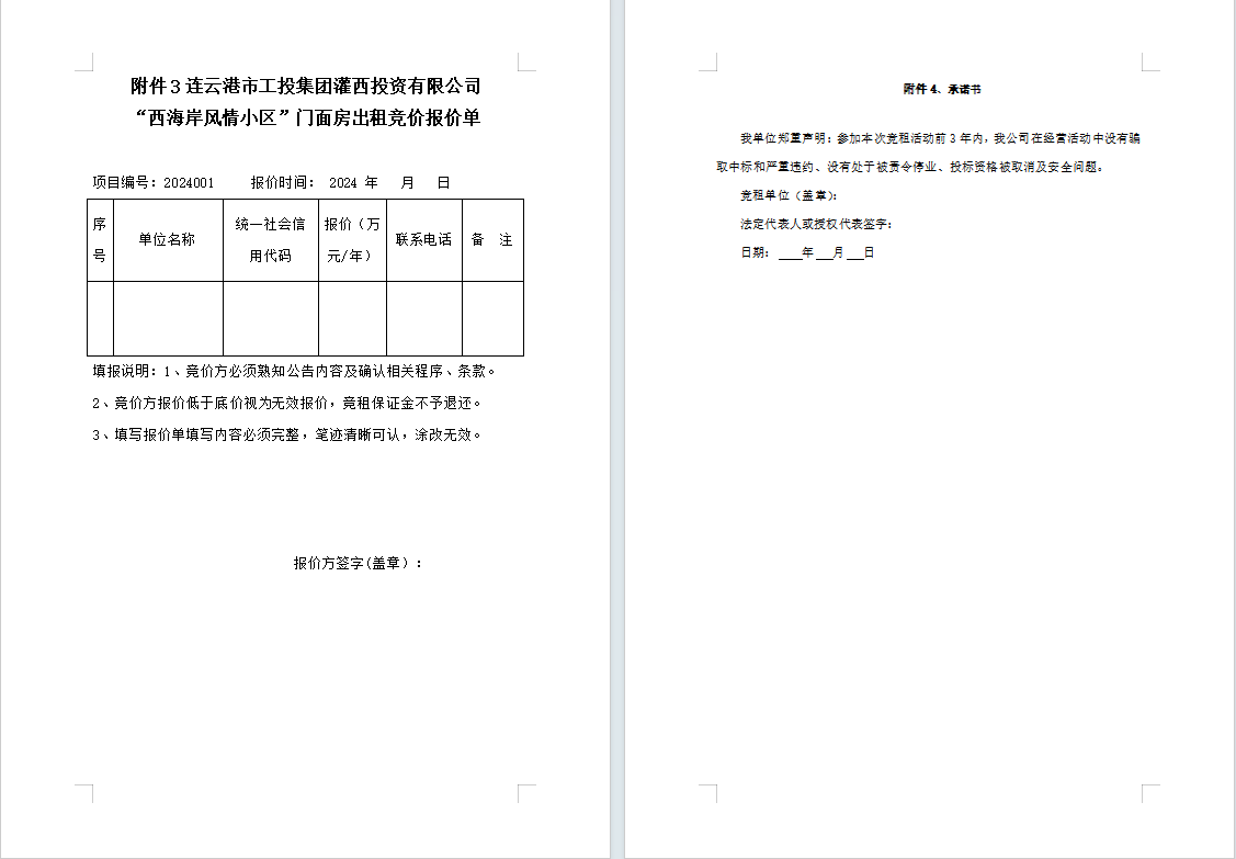 連云港市工投集團灌西投資有限公司“西海岸風情小區”門面房公開招租公告