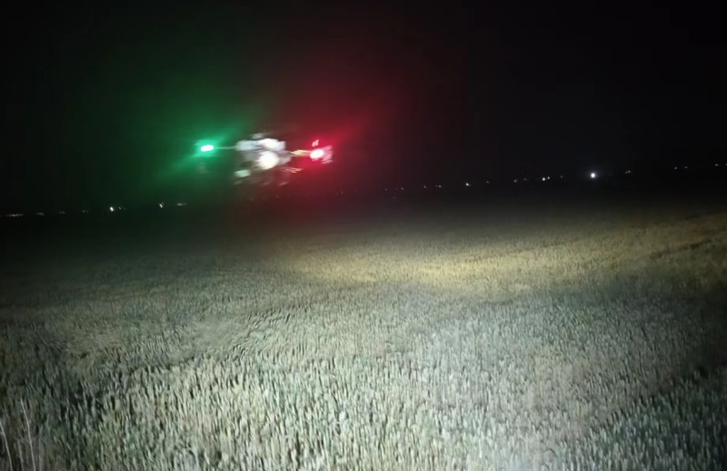 加班加點抓防治。晚上9點,大新農場組織2臺無人植保機在耐鹽堿小麥地實施小麥化噴施葉面肥作業。