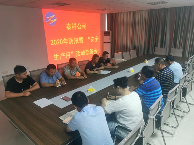 為貫徹落實青口投資公司防汛暨“安全生產月”活動會議精神,6月3日下午,泰祥公司組織全體人員召開2020年防汛暨“安全生產月”活動部署會。