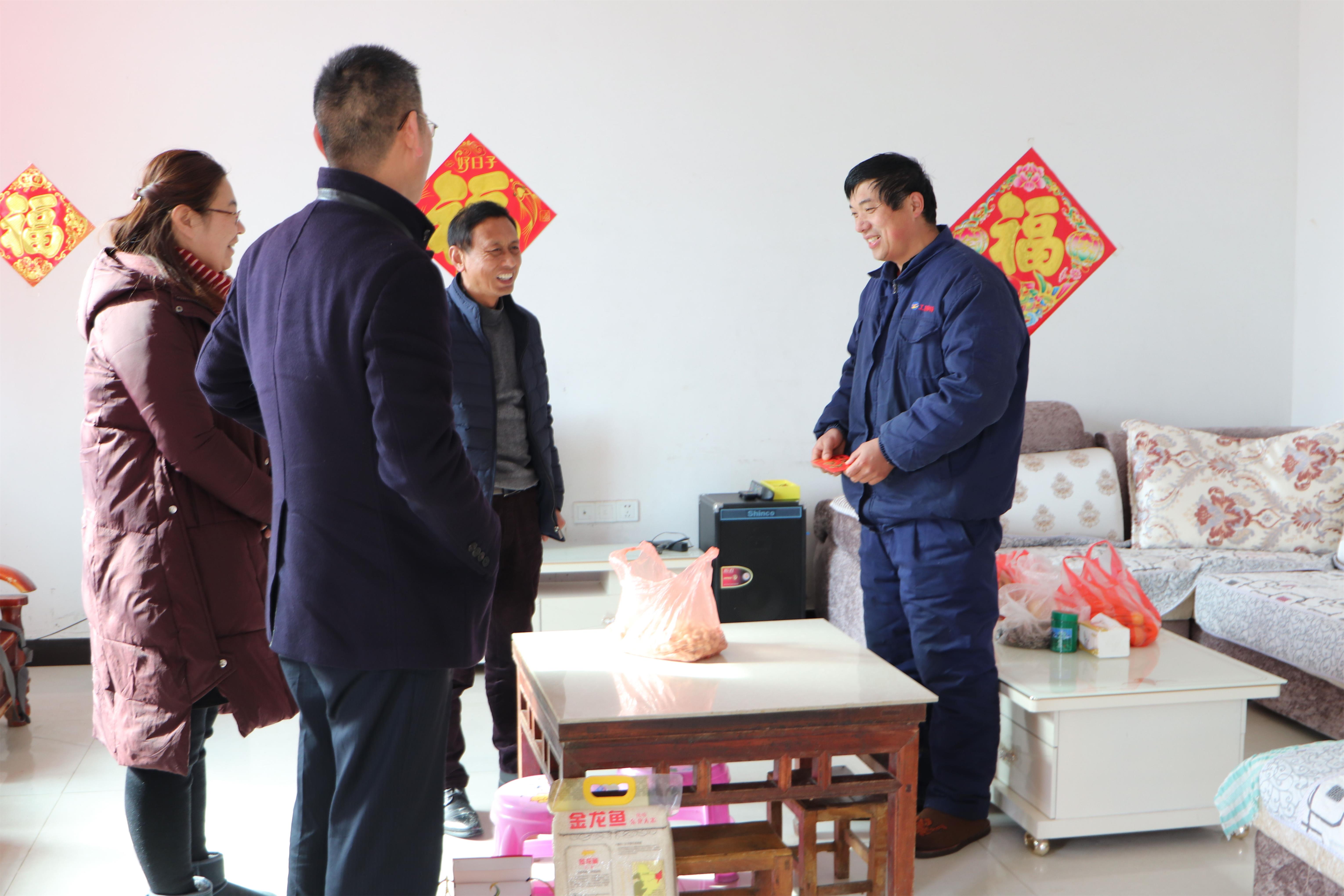 1月31日下午,公司黨支部書記鄒德兵、副總經(jīng)理王爽芳、工會主席袁忠一行走進困難職工孫英山等家中,為他們帶去節(jié)日的祝福和公司的關(guān)懷。