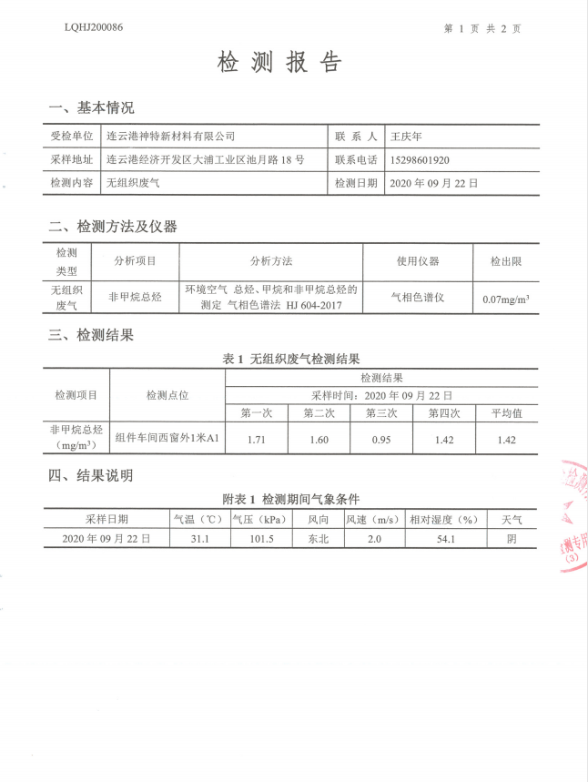 神特公司檢測(cè)報(bào)告公示