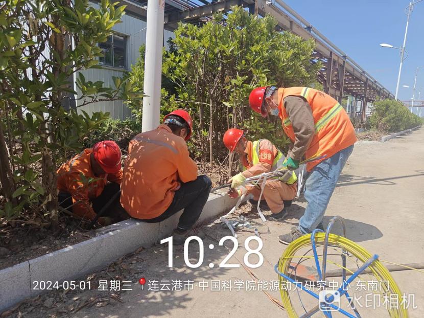 在中科院的路燈電纜施工現(xiàn)場,2000來米的電纜穿管工程時間緊任務(wù)重!舊路燈基座電纜孔全被泥土堵塞,穿線相當(dāng)困難!在“老黃牛”喬以成帶領(lǐng)下,市政班組全員在崗,集思廣益克服困難。大家顧不上烈日當(dāng)頭、蚊蟲叮咬,合起號子加油干,確保兩天拿下全部工程量。