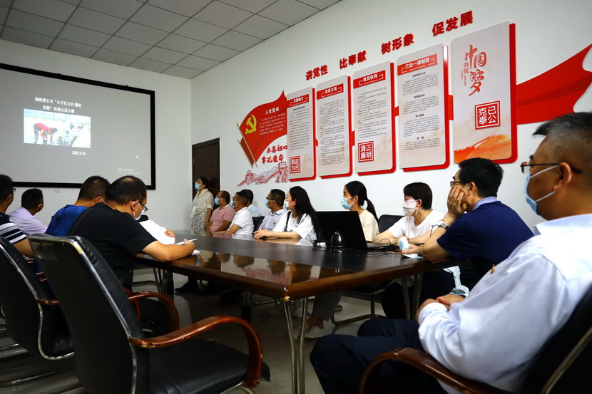 與會人員邊看邊聽講解海州灣黨支部規范化展板和本月書記項目的落實情況,以及在海州灣黨建活動室觀摩學習了上半年黨建基礎臺賬和活動影像。各黨支部就基層黨組織規范化及書記項目“點將臺”的落實情況作了匯報交流。黨委副書記楊善革針對各支部的黨建工作情況作了詳細的點評,指出各支部黨建工作中存在的不足,并要求各支部立即整改。