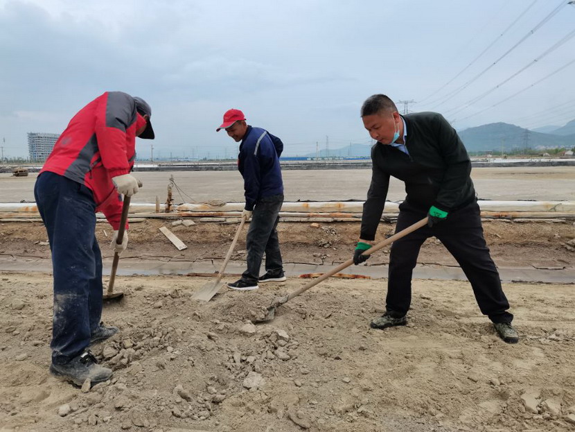 5月8日至10日,公司全體管理人員下至昌圩班組作業(yè)現(xiàn)場,與一線工人共同“作戰(zhàn)”——清理鹽池里沉淀的硫酸鈣固化物。硫酸鈣固化物俗稱鹽繭,形成的主要原因是鹵水中的硫酸鈣溶解度低,在特定的環(huán)境下大量形成,沉淀在鹽池板表層,若不清理,將嚴重影響鹽質(zhì)顏色。在清理過程中,黨員干部帶頭干、往前沖,一锨一锨地將鹽繭鏟起,堆積并裝車卸貨。公司秉承降本增效工作理念,將清理出的鹽繭廢物鋪墊在鹽灘壟道上,提高了路面硬度方便職工日常作業(yè)。