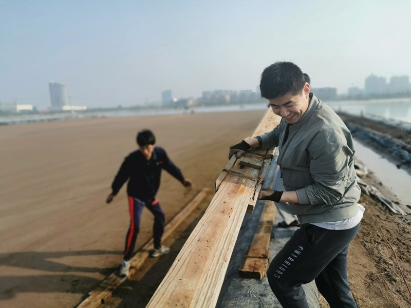 烈日酷暑下,大家用汗水編織出一幅激情四射的勞動圖。38度的高溫,3個小時,1500余米的浮板安裝被順利拿下。