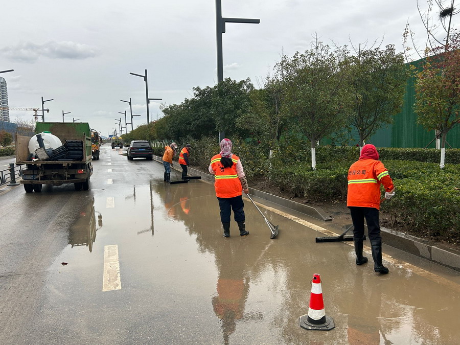 本次路線保障是今年以來最大規(guī)模任務(wù),遵循“每個重要現(xiàn)場必有安全員,必有班組長,必有機械設(shè)備”的要求,8個保潔班組,1個垃圾清運班組,1個清掃車隊,1輛鏟車,一層管理人員共160名職工全部出動。長達3天的路線保障中,清理落葉3.7噸,車輛行駛里程超1500公里,覆蓋防塵網(wǎng)近3000平方米,期間在開發(fā)區(qū)多次的突擊檢查中都能受到高度贊賞,為大合同簽訂再贏口碑。