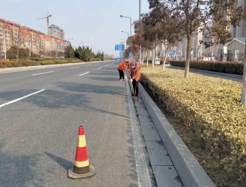近日,環衛分公司針對暴雪天氣后主干道側分帶路牙石灰垢較多、主干道護欄下灰垢較多等難題開展集中清掃工作。