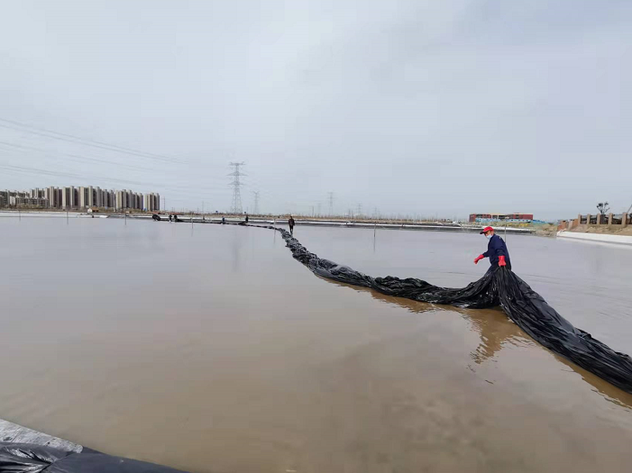 不負(fù)春光早起步,大干快上正當(dāng)時(shí)。隨著我市疫情剛一解封,海州灣公司礦鹽復(fù)產(chǎn)工程立即開啟加速“奔跑”模式,經(jīng)過前期充分的準(zhǔn)備和精心部署,在3月31日疫情解封的第一天,安排貨車將第一批塑布運(yùn)輸?shù)轿弧4稳赵缟?/span>7點(diǎn),海州灣公司和翔立分公司全體員工在先鋒班組集合,開啟第一輪塑布安裝以及鹵水灌池工作,搶抓“小滿”前后十八天的池內(nèi)長鹽黃金期。