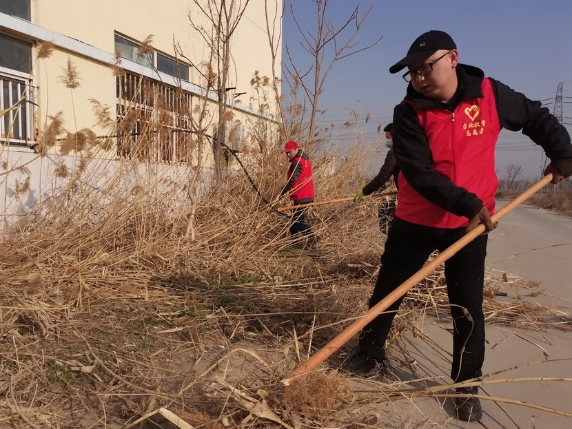 ? ? ? ? 34日,按照活動統一安排,志愿者們紛紛抵達各自點位開展統一活動,本次活動主要是清理公司主次干道兩邊的雜草以及各種彩色垃圾。活動中,身著紅色馬甲志愿者分工協作,首先由男同志們對周邊的蘆葦、鹽薅進行地毯式收割,大家揮動著鐮刀、鐵锨,干的十分起勁,顧不得漫天飛舞的蘆葦花和灰塵。女同志們負責用釘耙將割下的雜草以及死角里的彩色垃圾,摟到一起便于集中清理。在勞動過程中大家互相幫助、互相合作,很好的展現了集體的團結協作精神,有的同志手不小心被木板上的釘子劃傷了,擦干凈血接著干。經過2個小時的清理,主次干道煥然一新。