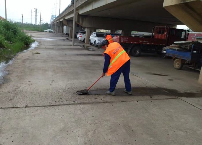 該公司針對橋面泄水孔、泄水管、排水道等地方安排專人檢查,養(yǎng)護(hù)清理的垃圾及時(shí)處理到位,不得堆放在泄水孔周邊。汛期視情況加大清理頻次。橋下衛(wèi)生死角雜物集中撿拾、打包、裝袋 、回場。橋面護(hù)欄亂懸亂掛廣告、標(biāo)語徹底清除及時(shí)沖洗,恢復(fù)原貌、露出底色。橋梁伸縮縫采取人工與機(jī)械結(jié)合重點(diǎn)沖洗清掃,保障伸縮縫干凈整潔。目前,所管轄區(qū)大小橋梁已經(jīng)水洗清掃整治到位。有效降低橋面揚(yáng)塵現(xiàn)象的發(fā)生,增強(qiáng)行車安全系數(shù),全面提升園區(qū)道路環(huán)境質(zhì)量。
